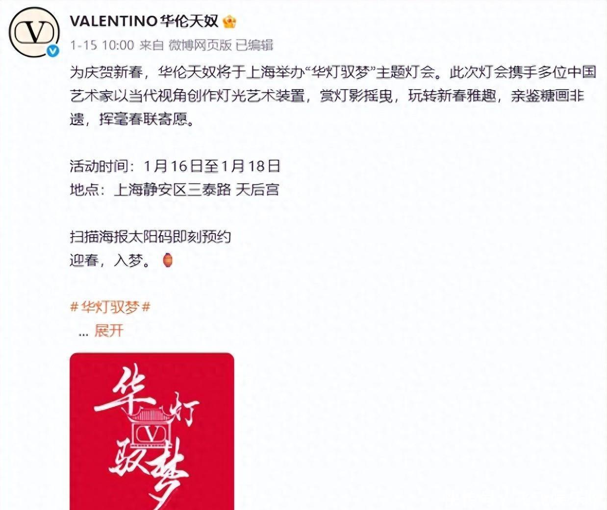 元旦刚刚过去半个月各大牌的红毯活动还在源源不断的举行中。这段时间,华伦天奴举办了一场叫做“华灯驭梦”的新春灯会互动,热闹非凡。